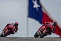 Setelah Marc Marquez terjatuh dan gagal finis, Francesco Bagnaia berhasil menjuarai MotoGP Amerika 2025.
